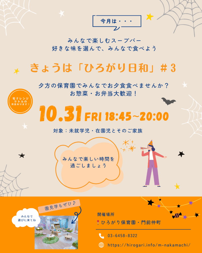 「地域の子育て世帯の皆様や在園児や、そのご家族の皆様と『保育園』で、お夕食を食べながら、ゆったりとした時間を一緒に過ごしませんか?