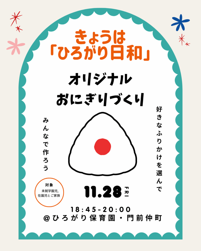 今回は、たくさんのふりかけをご用意していますので、白ご飯を持ってきていただければ、夜の保育園で親子でオリジナルおにぎりクッキングができます🍙💛